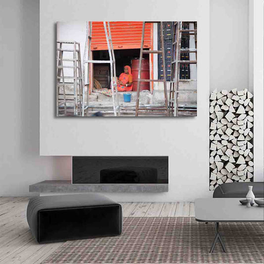 Agra India Photography | Woman Climbing Stairs Wall Art Print